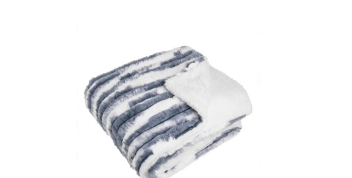 Patura de iarna, alba bleu cu doua fete pentru o camera de zi confortabila si cozy. Are o parte din imitatie de blana moale cu model reliefat si o parte din imitatie de blana sherpa. Poate fi folosita ca o cuvertura pentru fotoliu sau canapea pentru zilele reci de iarna.