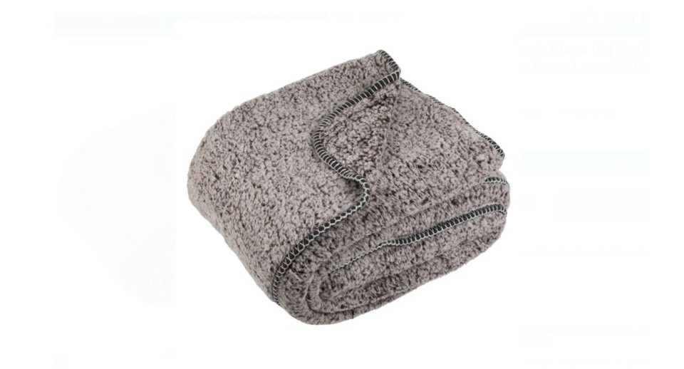 Patura dubla sherpa cu imitatie de blana sherpa de culoare maro si ecru.